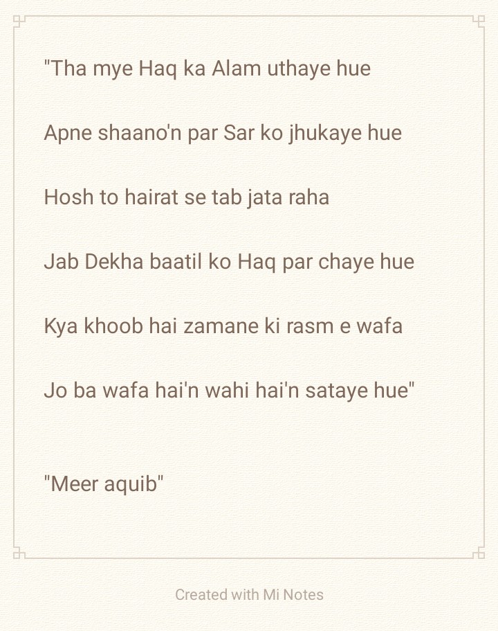 Tha mye haq ka Alam March 6, 2018 aquibqutbi Share this: Click to share on X (Opens in new window) X Click to share on Facebook (Opens in new window) Facebook Click to print (Opens in new window) Print Click to share on Pinterest (Opens in new window) Pinterest Click to share on WhatsApp (Opens in new window) WhatsApp Like Loading... Related Published by aquibqutbi View all posts by aquibqutbi
