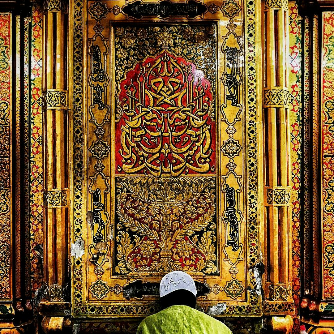 [Pic of a believer seeking Intercession in the shrine of Hazrat Nizamuddin Auliya (RA)]