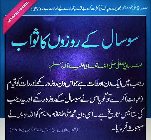Rasool maqbool (S.A.W) farmate hain keh mah rajab ki be shumar fazilat hai aur is mah mubarak ki ibadat buhat afzal hai.