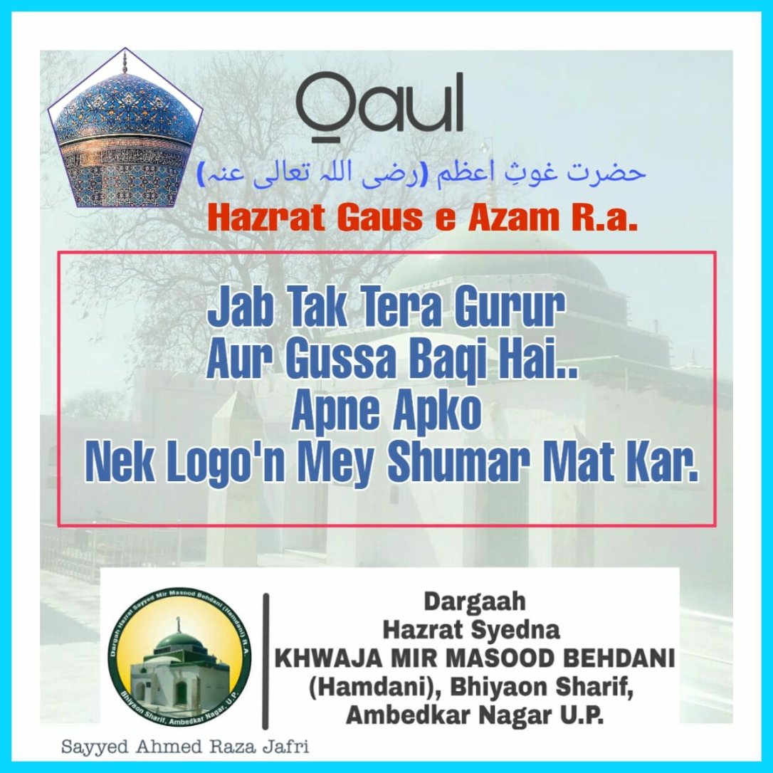 Qaul e Hazrat Syed Abdul Qadir jelani Rehmatullah Alaih.. December 9, 2019 aal-e-qutub Share this: Click to share on X (Opens in new window) X Click to share on Facebook (Opens in new window) Facebook Click to print (Opens in new window) Print Click to share on Pinterest (Opens in new window) Pinterest Click to share on WhatsApp (Opens in new window) WhatsApp Like Loading... Related Published by aal-e-qutub View all posts by aal-e-qutub