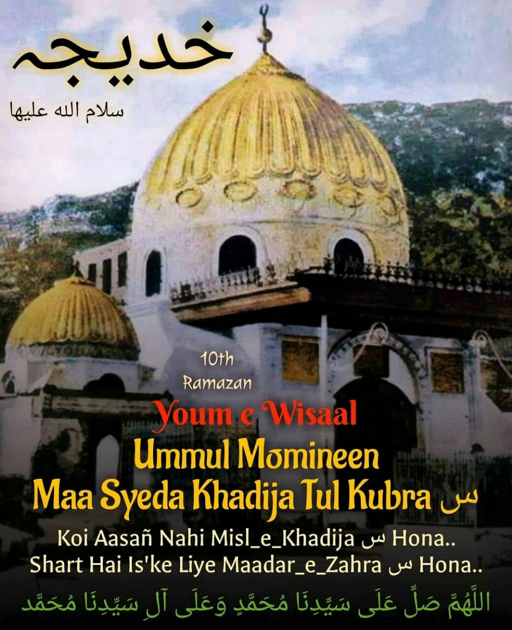 Aaj 10 Ramzaan ul Mubarak *Ummul Momineen Hazrat e Sayyeda Khadijat ul kubra سلام الله عليها* ke wisaal ki khaas shab hai unki bargaah mein khiraaj e aqeedat pesh karein.