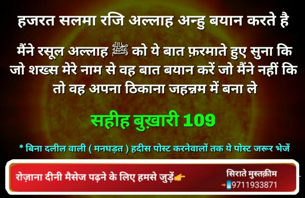 Hadeeth Sahi Bukhari 109 May 6, 2020 aal-e-qutub Share this: Click to share on X (Opens in new window) X Click to share on Facebook (Opens in new window) Facebook Click to print (Opens in new window) Print Click to share on Pinterest (Opens in new window) Pinterest Click to share on WhatsApp (Opens in new window) WhatsApp Like Loading... Related Published by aal-e-qutub View all posts by aal-e-qutub
