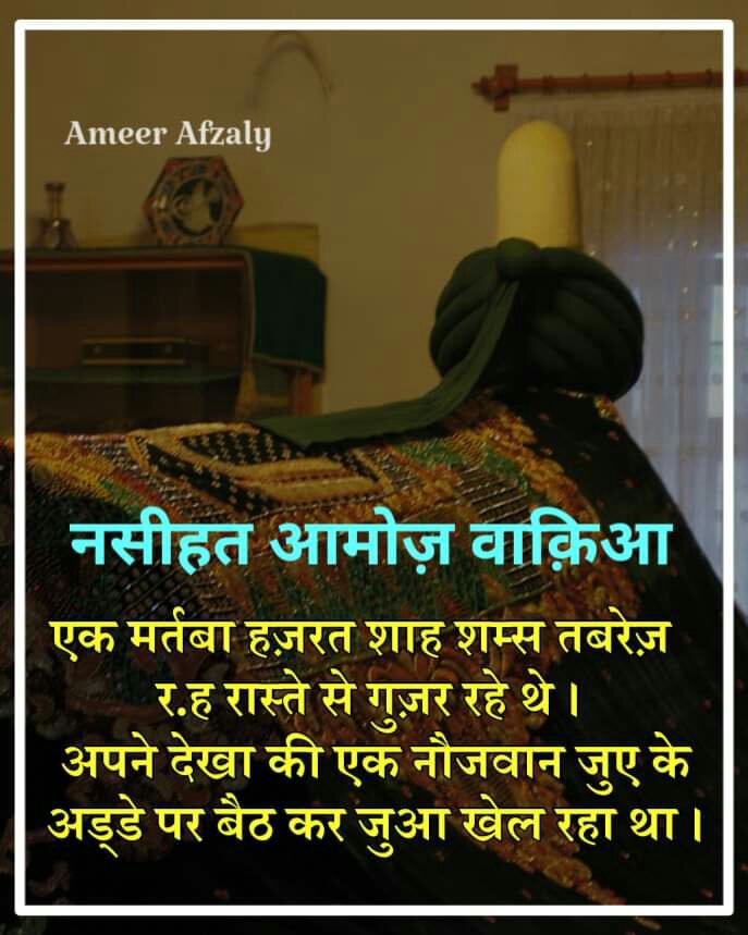 वो शर्मिंदा हो गया और नज़रे झुकाने लगा और शाह शम्स तबरेज र.ह आगे चलने लगे तो वो शख़्स फिर से भाग कर आपके पास आया और कहने लगा ऐ बाबा जुआ तो मै भी खेलता हूं तो सज़ा तो मुझे भी मिलनी चाहिए ।