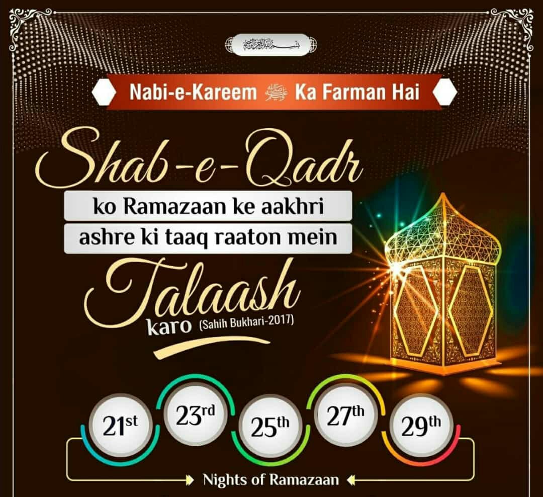 *ⓩ Bahre kaif jo log in paancon taak raaton me yaani 21,23,25,27,29 ko raat bhar ibadate ilaahi me madroof rahte hain bila shubah wo maula ke nek bande hain maula unki ibadaton ko qubool farmaye aur apne un achchhe bando ke sadqe hum jaise badkaro ki ibaadat ko bhi qubool farmaye*