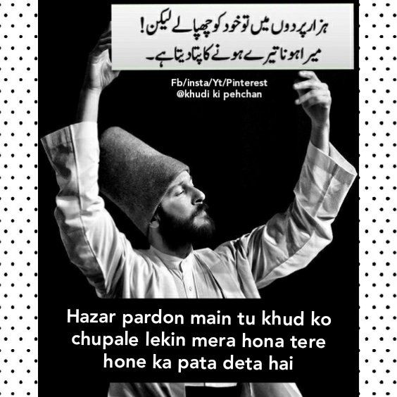 *”” Hazar pardon main tu khud ko chupale lekin mera hona tere hone ka pata deta hai “””*