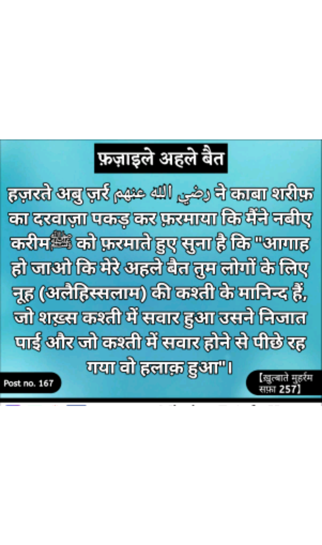 Hadith fazail e Ahele Bayt August 6, 2020August 7, 2020 aal-e-qutub Share this: Click to share on X (Opens in new window) X Click to share on Facebook (Opens in new window) Facebook Click to print (Opens in new window) Print Click to share on Pinterest (Opens in new window) Pinterest Click to share on WhatsApp (Opens in new window) WhatsApp Like Loading... Related Published by aal-e-qutub View all posts by aal-e-qutub