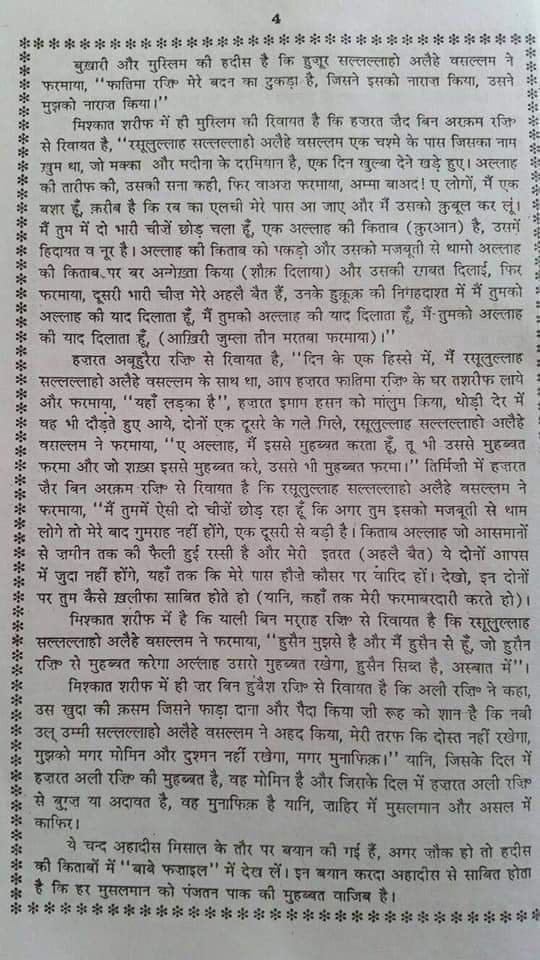 Mere Azeez doston, Ghame Hussain mein roney par aaj kuch hazraat sunnion par shia ka fatwa lagate hain aur unka mazaak banate hai. Aaj main apko Khwajgaan e Chist رضی اللہ عنہم ke Malfoozaat k hawale se bataunga woh kaise zikre karbala kiya karte they.Rahatul Muhibbeen jo Khawaja Nizamuddin Auliya Rehmatullah alaih ke malfoozaat hain jisko Ameer Khusroo Rehmahullah alaih ne murattab kiya hai isme ha ke Khawaja sahab ne Syeda Zahra سلام اللہ علیہا ki paidaish ka zikr kia jiske baad achanak Khawaja sahab aab didah(roney) hogaye. Aur ye isiliye k unko karbala ka waqiya yaad agaya jisme Khatoone Jannat سلام اللہ علیہا k jigar goshon ko zalimon ne berahmi se shaheed kardiya. Agey farmate hain baroze mehshar zalimon ko Syeda ke samne rakha jayega magar Maa Zahra Salaamullahi alaiha badla lene k bajaye ummat ki bakhsish karwalengi. Khawaja sahab jab ye sab bata rahe they unki aankh se ansun jari they!!Rahat ul Quloob jo Baba Fareed GanjeShakar Rehmatullah alaih ke malfoozaat hain jisko Nizamuddin Auliya Rehmatullah alaih ne murattab kiya tha isme jab Shaykhul Islam karbala ka zikr chedte hain toh yaad karte hain kaise zalimon ne pyasa shaheed kiya Rasūlullah ﷺ k shehzaadon ko phir achanak nara maarkar behosh hojate hain. Ab mera sawaal hai hum toh Wah Hussain wale they na?? Toh Shaykhul Islam ne ye kiya kardiya?? Wah Hussain ki bajaye Behosh hogaye!!??Thoda sharam karlo fatwa baaz mullaon tumhari bakshih tumahre mulla ji nahi karega Syeda Zahra سلام اللہ علیہا karengi.