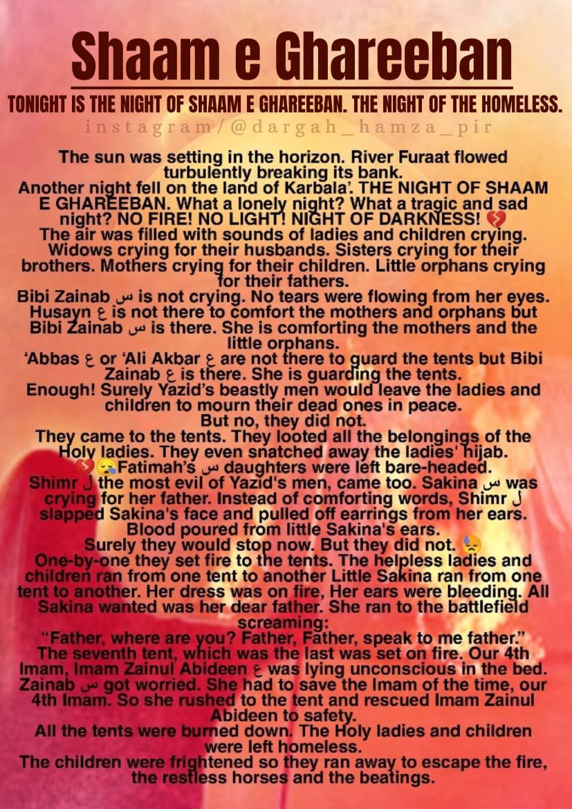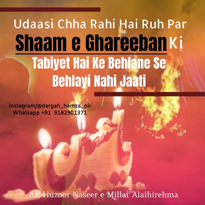 Shaam e Ghareeban August 31, 2020 aal-e-qutub Share this: Click to share on X (Opens in new window) X Click to share on Facebook (Opens in new window) Facebook Click to print (Opens in new window) Print Click to share on Pinterest (Opens in new window) Pinterest Click to share on WhatsApp (Opens in new window) WhatsApp Like Loading... Related Published by aal-e-qutub View all posts by aal-e-qutub