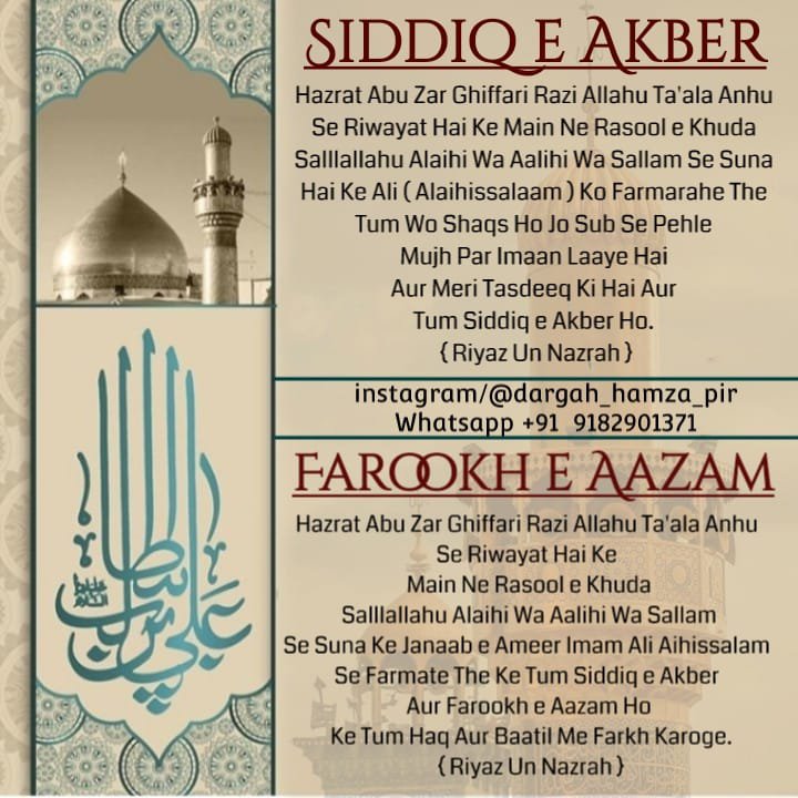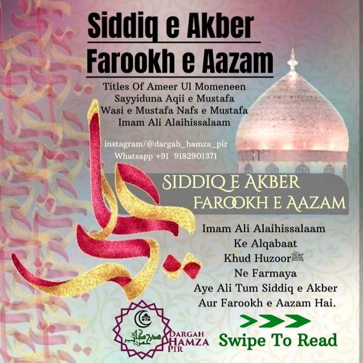 Siddiq e Akber & Farookh e Aazam Titles Of Imam Ali Alaihissalaam.