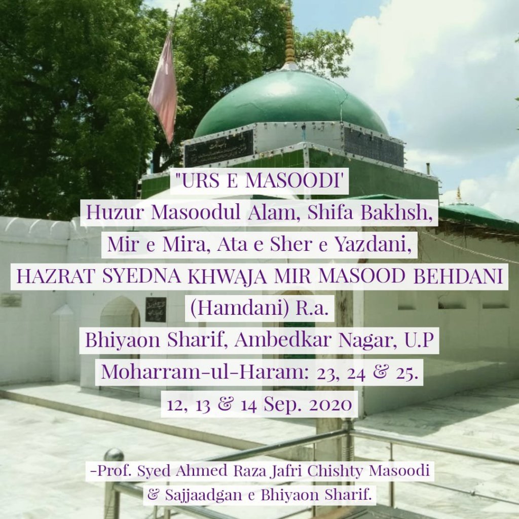 Huzur Masoodul Alam, Sarkar Mir e Miran, Shifa Baksh, Ata e Sher e Yazdani Hazrat Syedna Khwaja Mir Masood Behdani(Hamdani).R.a. Hazrat Baba Fariduddin Masood Ganj-e-Shakar R.A. Ke Khalifaye Khaas me se hain.