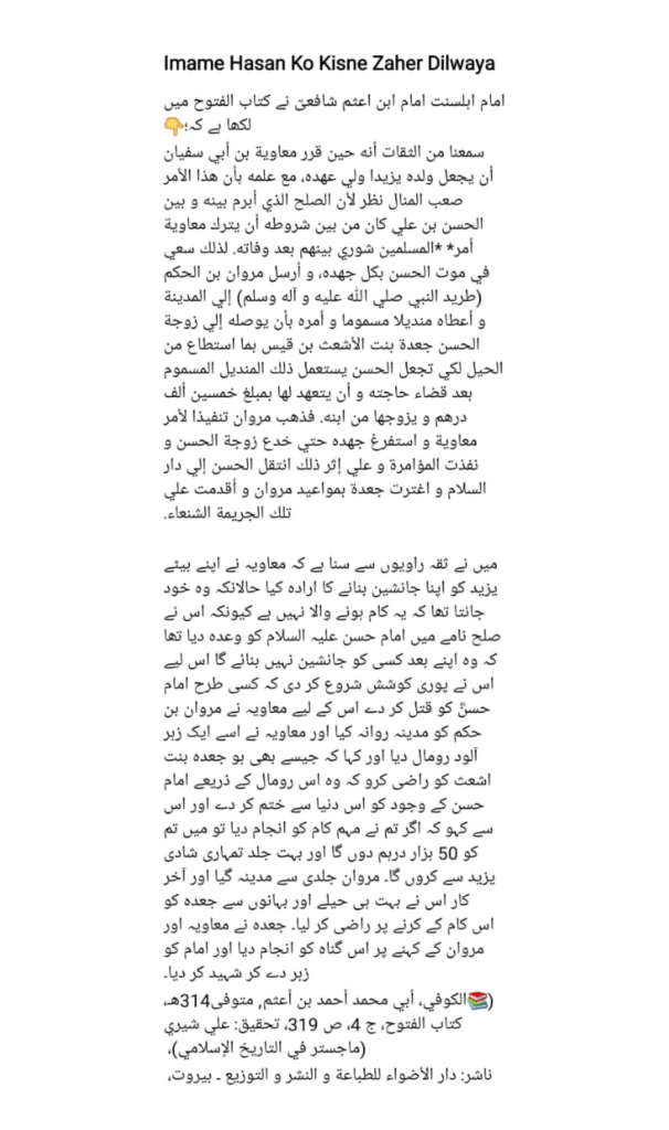 इमाम ए हसन अल मुज्तबा अलैहिस्सलाम को किसने ज़हर दिलवाया कौन कौन इसमें शामिल था