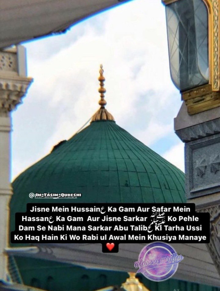 Sayyeduna Maula Ali Alaihissalam bayan karte hain ke Unhone Apne Walid Hazrat Sayyeduna Abu Talib Alaihissalam se suna. Wo bayan karte they: “Jab Sayyeda Aamina (Salamullahi Alaiha) ne Huzoor Nabi-e-Akram SallAllahu Alaihi wa Aalihi wa Sallam ko Janam diya to Aap SallAllahu Alaihi wa Aalihi wa Sallam ke Jadd-e-Amjad Hazrat Abdul Muttalib Alaihissalam Tashreef laaye aur Aap SallAllahu Alaihi wa Aalihi wa Sallam ko uthaya, Mathe par Bosa diya, Fir Hazrat Abu Talib ke hawale karte hue farmaya: Ye Tumhare paas Meri Amanat hai, Mere is Bete ki Bahot Badi Shaan hogi! Fir Hazrat Abdul Muttalib ne Unt aur Bakriyan Zibah karwayin aur Tamam Ahle Makka ko 3 din tak ziyafat ki. FirMakka Mukarram ki taraf aane waale har raaste par unt zibah karwaye rakh diye jinse tamam insano, janwaron aur parindon ko gosht lene ki ijazat thi.”