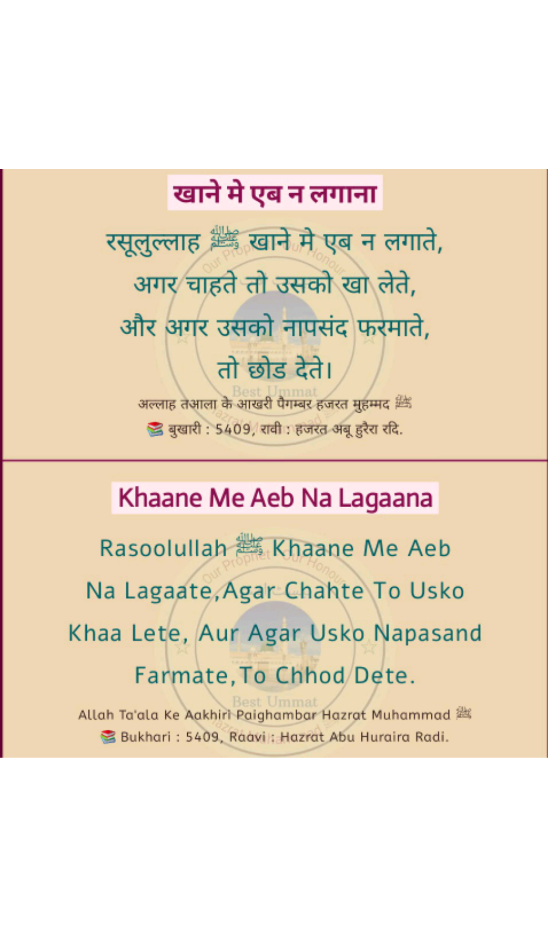 Hadith Bukhari 5409 October 24, 2020 aal-e-qutub Share this: Click to share on X (Opens in new window) X Click to share on Facebook (Opens in new window) Facebook Click to print (Opens in new window) Print Click to share on Pinterest (Opens in new window) Pinterest Click to share on WhatsApp (Opens in new window) WhatsApp Like Loading... Related Published by aal-e-qutub View all posts by aal-e-qutub