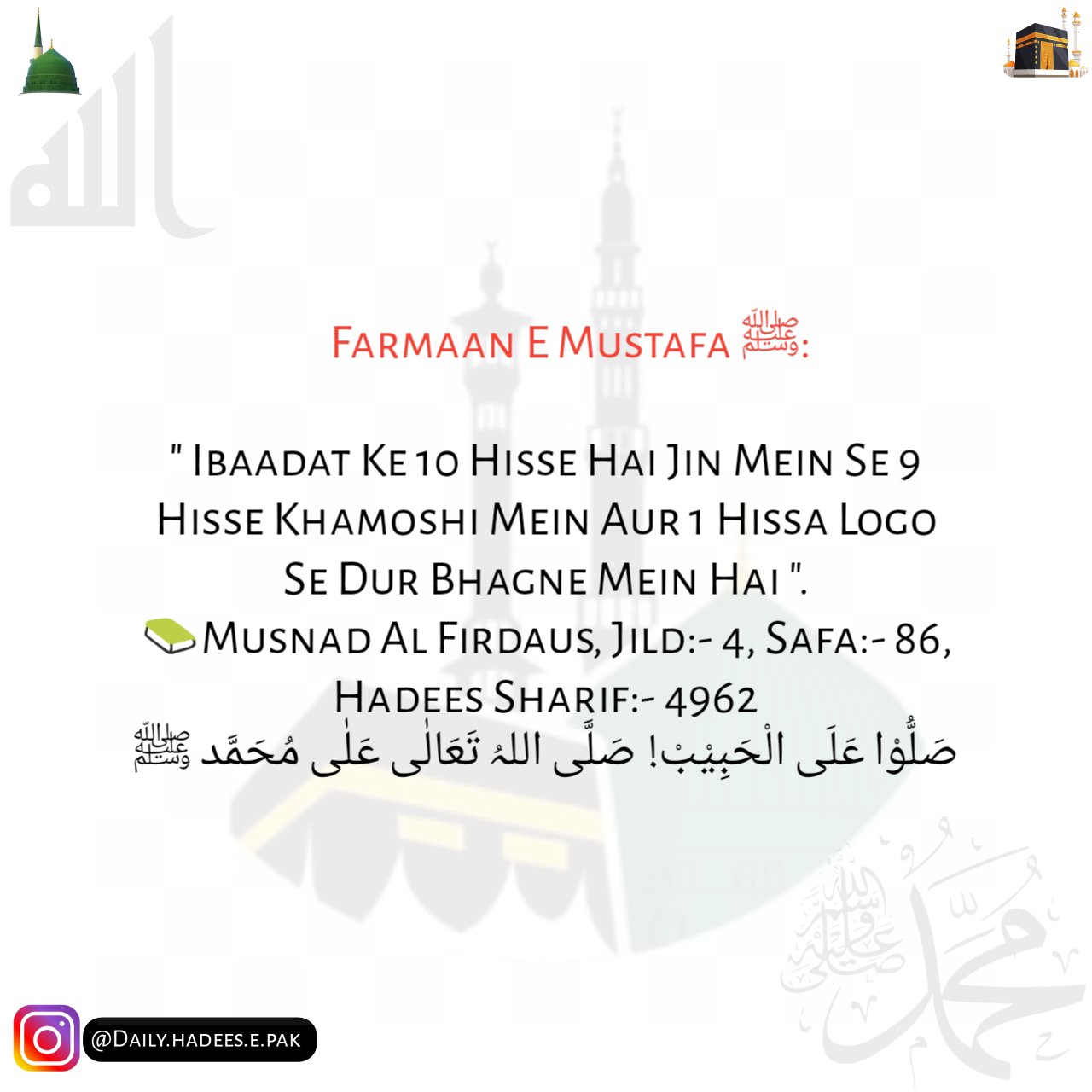 Hazrat ibne Abbas RadiAllahu Anhuma se riwayat hai ke Huzoor Nabi-e-Akram SallAllahu Alaihi wa Aalihi wa Sallam ne farmaya: “Jo shakhs ye pasand karta hai, Meri tarah Zindagi basar kare, Meri tarah Wisaal paaye, Jannat-e-Edn uska thikana ho jisey Mere Rabne Sanwara hai, pas wo Mere baad ALI ko Dost rakhe aur Uske dost ko bhi dost rakhe! Aur Mere baad Aaimma ki iqteda karey kyunki Wo Mera Kumba hai Jinhe Meri Khilqat par Paida kiya hai (aur Unhe) Ilm wa Feham ata kiya gaya hai. Meri ummat ke unlogo keliye halaqat hai jo Unki Fazilat ka inkar karenge aur unke darmiyan Mere Rishte ko kaatenge. Allah Ta’ala unhe Meri Shafa’at nasib nahi karega.” Alaihim Afdalus Salawatu was Salaam Imam Abu Nuaim Asfahaani,