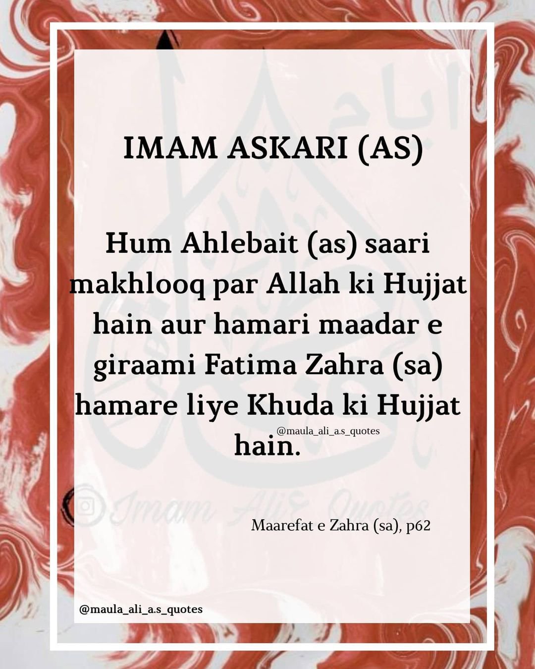 Bibi KHADIJAH (سلام الله علیها) Bayan Farmati Hai ,”Jab Bibi Fatimah AZ Zahra (سلام الله علیها) Mere Shiqam Mein thi, Har Roz Mujhe Jannat ki Maheak Mehsus Hoti Thi. Aur Yeh Maheak Purey 9 Mahine Tak Mujhe Gehri Huwi Thi aur phir Jannat ki Khubsoorat Kalee Meri Goudi Mein Tashreef Le Aye.” 💖