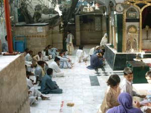 The shrine is visited by both Shias and Sunnis. In the Islamic month of Jumada al-Thani three days urs of Bibi Pak Daman from 7 to 9 is celebrated. The urs proceedings are mostly a Sunni affair while Shias visit the shrine most commonly during Muharram and Safar. Many Shias also visit during the urs. The street and shrine area remain filled with devotees all the day from all over Pakistan. On the eve of Urs, the shrine is even more crowded. People from across the subcontinent, mainly from Provinces of Punjab and Sindh, come to the shrine to pay their homage and make a wish which they believe more likely would come true. A narrow lane that leads to the shrine has shops on both sides containing Muharram-related items. Imam Ali, Imam Hassan, Imam Hussain and literature on the history of Karbala, Khak-e-Shifa (soil of Karbla) and CDs of Nohas (elegies) are available at the shops.[7][8] A reverence event of urs includes a ritual in which women devotees bring water for ablution of the graves at the shrine of Bibi.[9] The Tourism Development Corporation of Punjab Limited (TDCP), Government of Punjab has placed this shrine in the list of some popular shrines for the tourists.