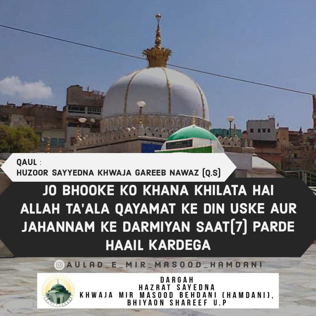 “हुज़ूर ख़्वाजा ग़रीब नवाज़ का कमाल इस से समझ लेना चाहिए कि वफ़ात के वक़्त आपकी पेशानी-ए-मुबारक पे ग़ैब से ये कलिमा ज़ाहिर हो गया हबीबुल्लाहि मा-त-फ़ी हुब्बिल्लाह.” (19)