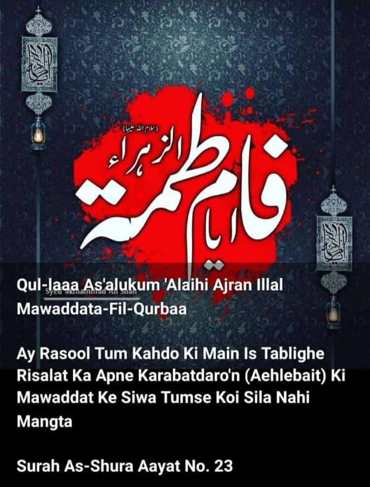 Apni Nigaahe Jhuka Lo Taa Ki Fatimah Binte Muhammad-E-Mustafa SallAllahu Ta’ala Alayhi Wa Aalihi Wa Sallam Guzar Jaaein.”