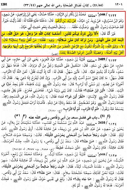 “Amir bin Saad Bin Abi Waqqas Bayan Karte Hain Ki Jab Aayatey Mubaahila Naazil Huwi :“Farmado Aao Hum Bulaye Apne Bete Aur Tumhare Bete Aur Apni Aurato Aur Tumhari Aurato Aur Apni Jaane’in Aur Tumhari Jaane’in Phir Mubahila Kare To Jhuto Par Allah Ki Laanat Daale”