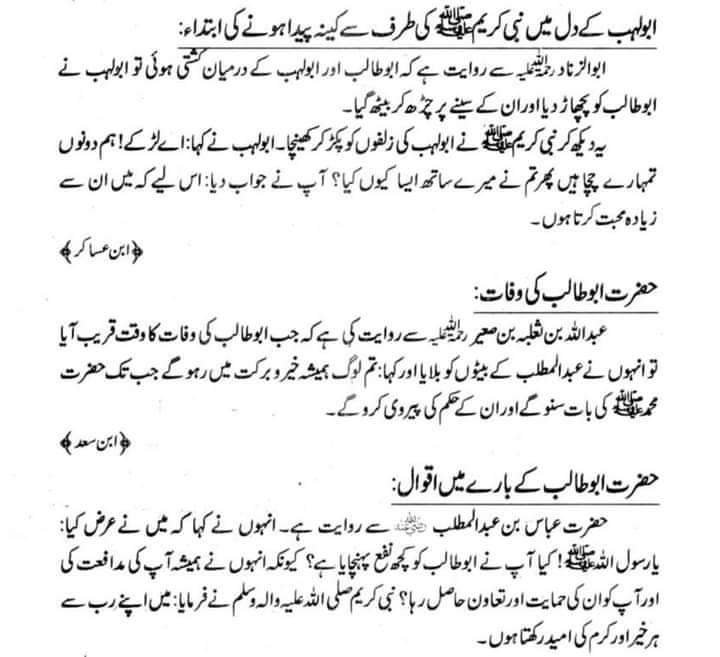Nabi Sallallahu Alaihi Wa Aalihi Wa Sallam Sayyedna Abu Talib Alaihisalam Ke Janaze Ke Saath Tashreef Le Gaye Aur Farmaya Aye Mere Chacha Jaan Aapne Sulah Rehmi Ka Haq Ada Kardiya Aur Mere Haq Mein Aapne Koi Kami Aur Kotayi Na Ki Allah Tabarakwata’ala Aapko Jazae Khair Ata Farmaye.