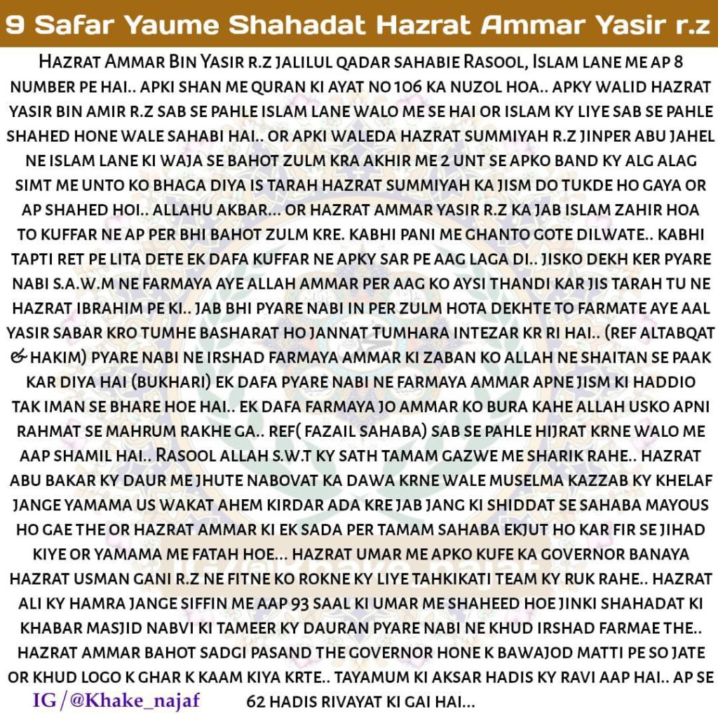 9th Safar Yaum E Shahdat Hazrat Amma Bin Yasar.,