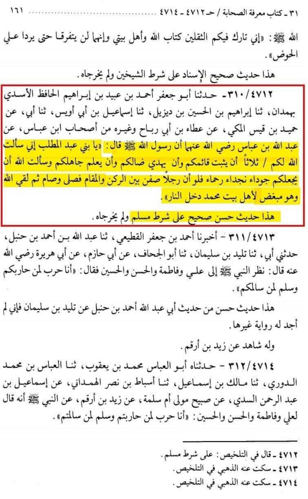 (Imam Hakim Al Mustadraq Vol : 02, Pg : 406, Hadees : 3370)