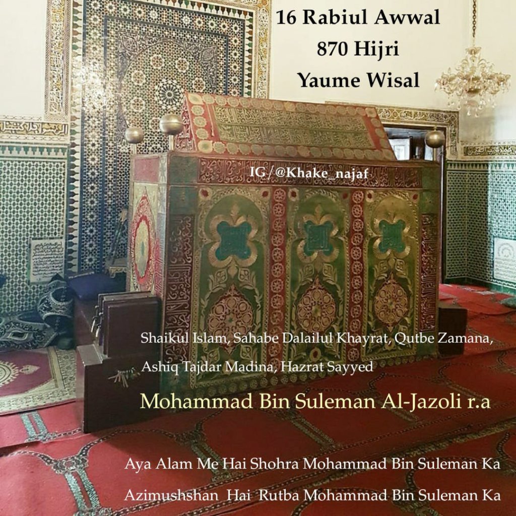 Yaum e Wisal Hazrat Mohammad bin Sulaiman Al-jazoli Rehmatullah alaih 16 Rabiul Awwal