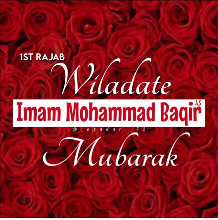 1 Rajab Sayyeduna Imam Muhammad al Baqir Alaihissalam ke Milad ka Din hai! Aap Sayyeduna Imam Hussain Alaihissalam ke Pote, Sayyeduna Imam Zainul Aabideen Alaihissalam ke Shehzade, Sayyeduna Imam Jafar as-Sadiq Alaihissalam ke Walid, Imam Abu Hanifa ke Ustad hain, Ilm ki Puri ek Kainat hain!