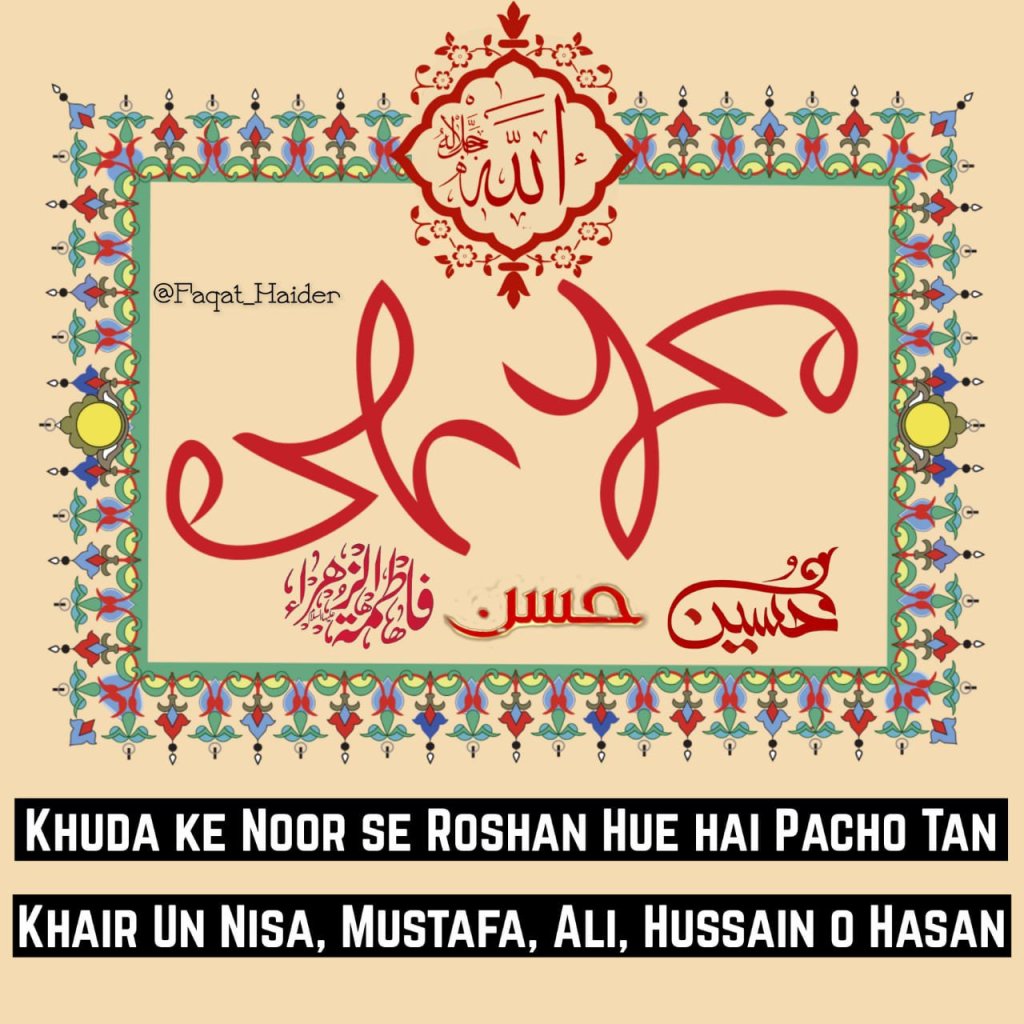 Rasoolullah Sallallahu ta’ala wa’ala aale hi Wasallam ne farmaya Hussain Mujhse hai,Main Hussain se hu jo isse muhabbat karta hai Allah usse muhabbat Karta hai.