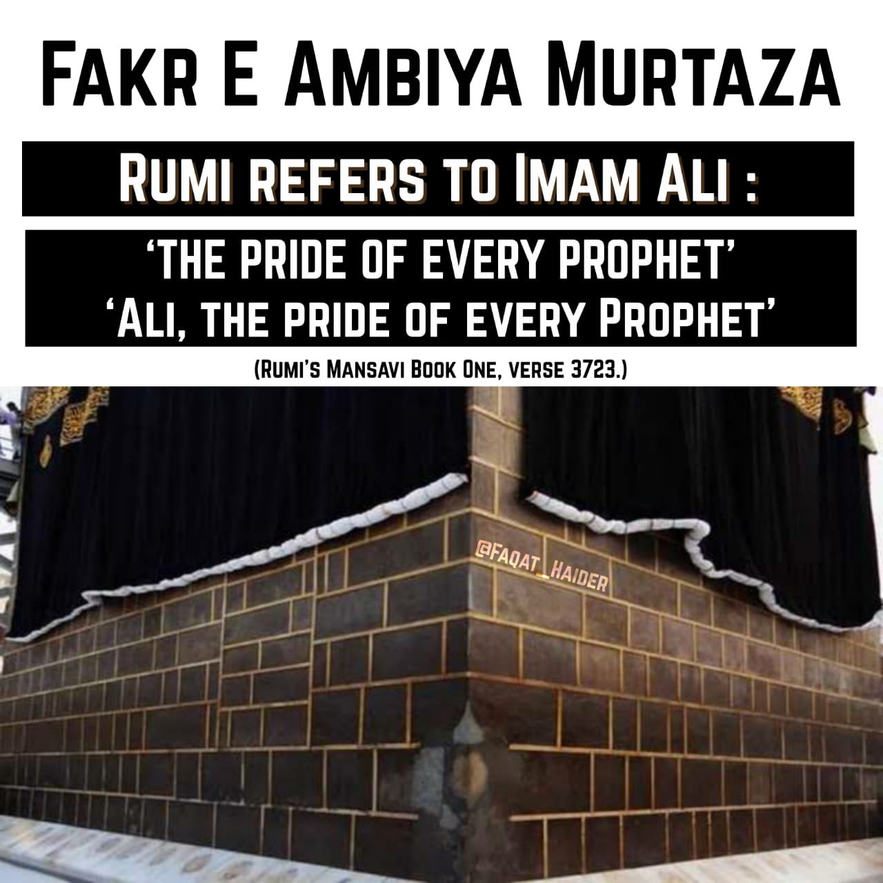 Rumi refers to Imam ‘Ali as, ‘THE PRIDE OF EVERY PROPHET’ –