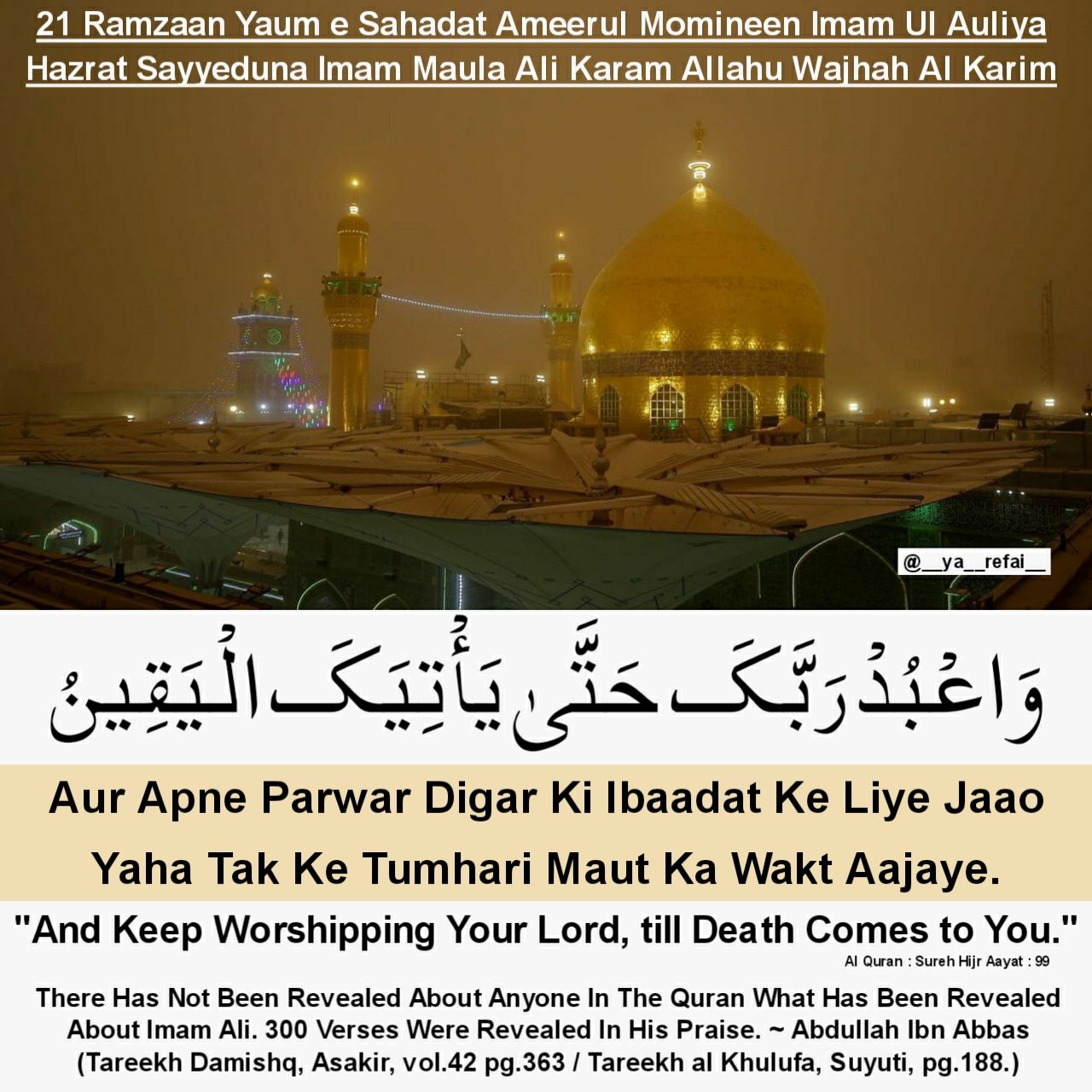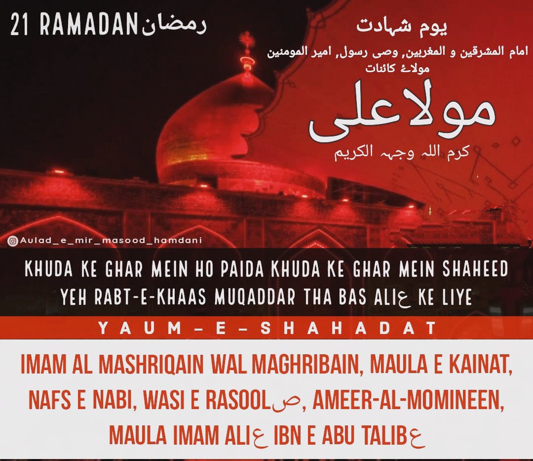 21 Ramadan “Yaum-e-Shahadat Maula Ali Alaihissalam”
