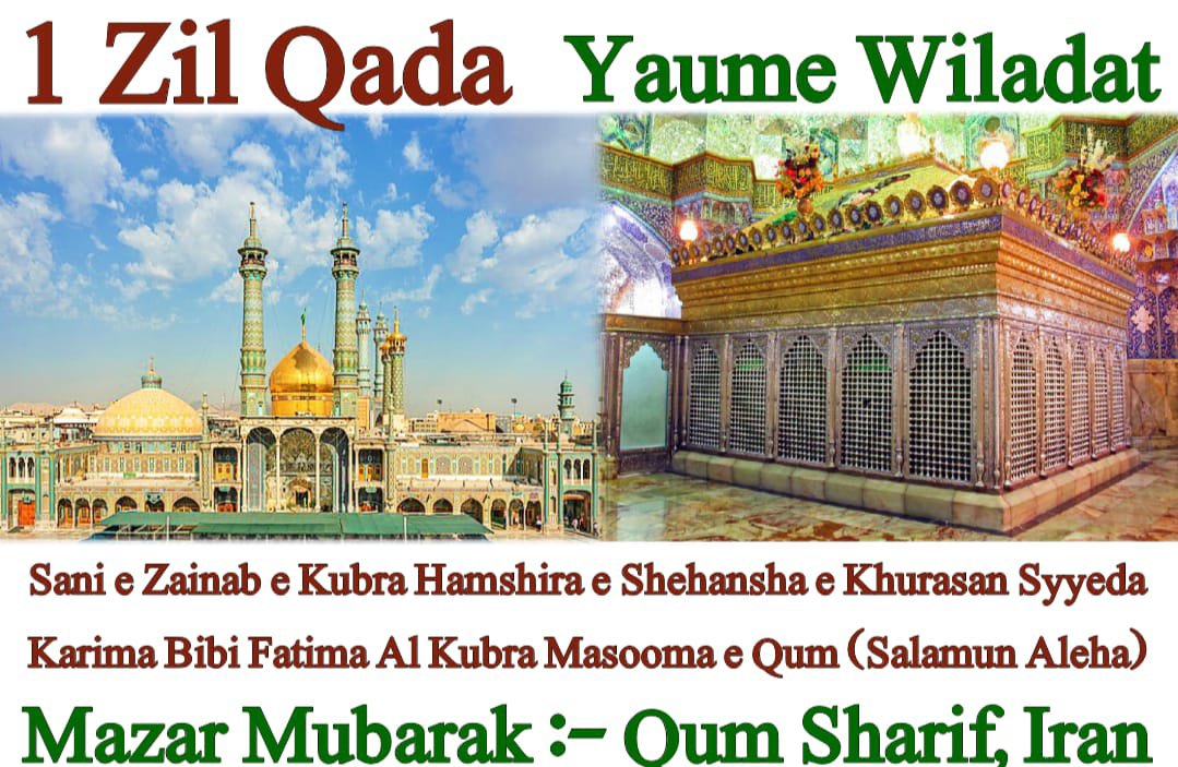 Zikr e Syeda Fatima Bint-e-Syedna Imam Musa Kazim AlahisSalam. June 3, 2022 aal-e-qutub Share this: Click to share on X (Opens in new window) X Click to share on Facebook (Opens in new window) Facebook Click to print (Opens in new window) Print Click to share on Pinterest (Opens in new window) Pinterest Click to share on WhatsApp (Opens in new window) WhatsApp Like Loading... Related Published by aal-e-qutub View all posts by aal-e-qutub