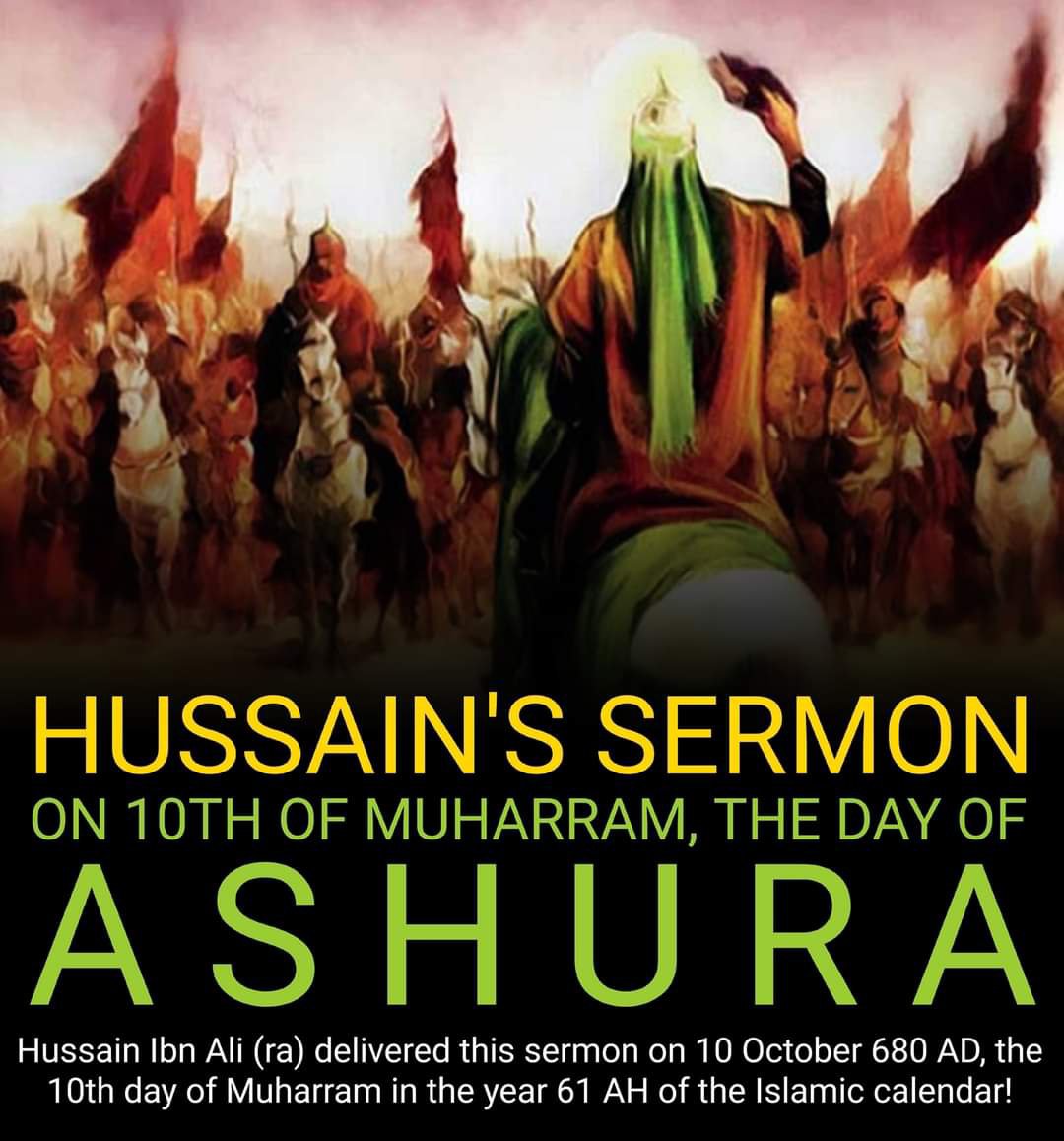 Hussain Ibn Ali called for his horse/camel. Having mounted it, took the copy of the Holy Qur’an with him, then stood in front of those people and said, “O people! The Book of Allah and the Sunnah of my grandfather, the Messengerﷺ of Allah, are the arbitrators between you and me.” (2)