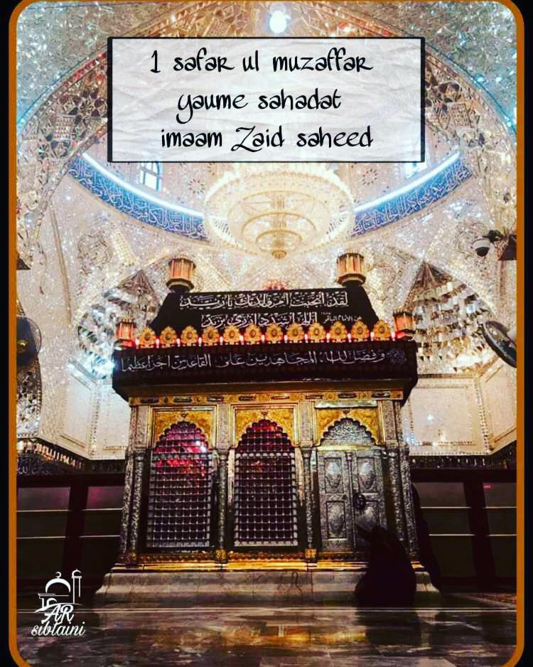 *1 Safar ul Muzaffar Yaum e Shahadat Hazrat Sayyiduna Imam Zaid e Shaheed (عليه السلام)* *Imam Zain al Abideen (عليه السلام) Ke Shehzade* *Imam Maula Hussain (عليه السلام) ke pote* *Safar Mahine ki pehli tarikh ko Unki Shahadat hai Jinke Mureed Imam-e-Aazam Abu Hanifa Jaisi Azeem Hasti hai!* *Unke baareme Muhaddis-e-Akbar Imam Shuabi ne farmaya:*
