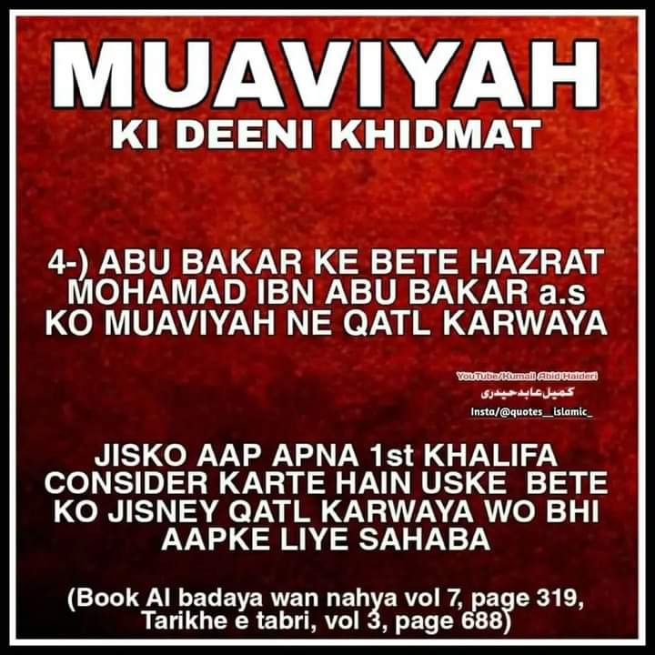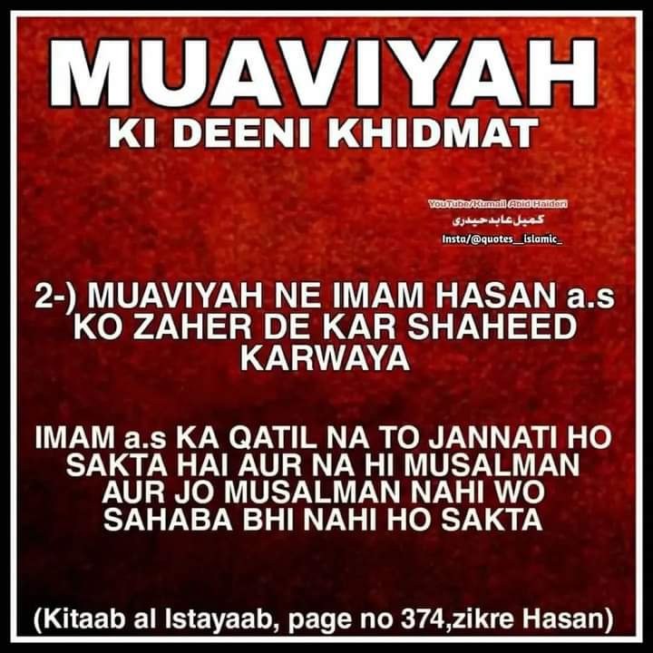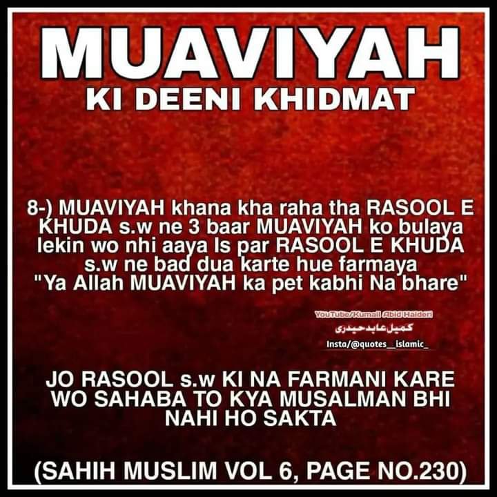 Muawiya ki deeni khidmat. October 23, 2022 aal-e-qutub Share this: Click to share on X (Opens in new window) X Click to share on Facebook (Opens in new window) Facebook Click to print (Opens in new window) Print Click to share on Pinterest (Opens in new window) Pinterest Click to share on WhatsApp (Opens in new window) WhatsApp Like Loading... Related Published by aal-e-qutub View all posts by aal-e-qutub