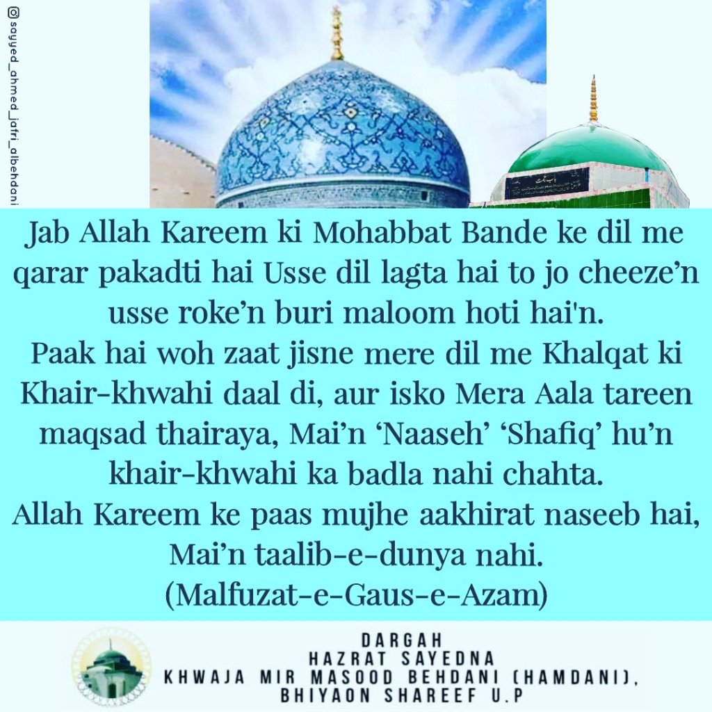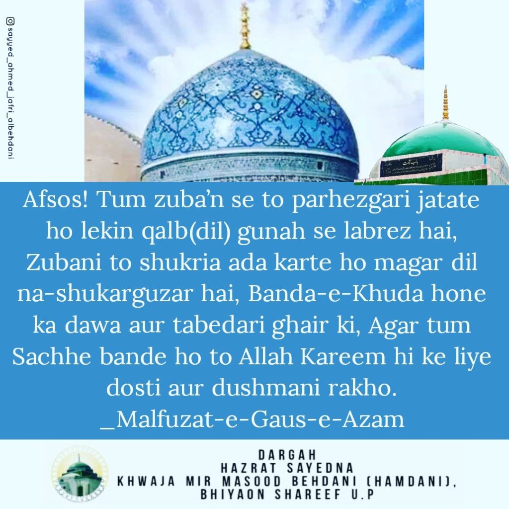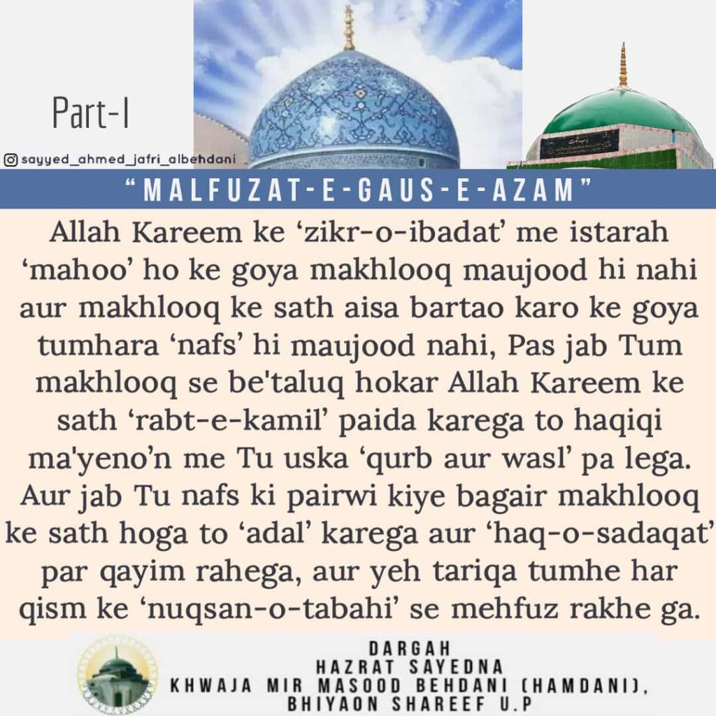Malfuzat e Gaus e Azam. November 4, 2022 aal-e-qutub Share this: Click to share on X (Opens in new window) X Click to share on Facebook (Opens in new window) Facebook Click to print (Opens in new window) Print Click to share on Pinterest (Opens in new window) Pinterest Click to share on WhatsApp (Opens in new window) WhatsApp Like Loading... Related Published by aal-e-qutub View all posts by aal-e-qutub