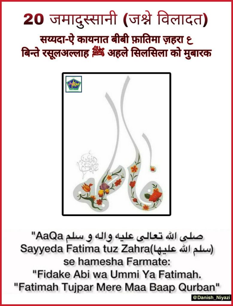 रसूलुल्लाह (ﷺ) ने फरमाया बेशक फातिमा (ع) मेरी शाख है, जिस शय से उसे खुशी होती है उससे मुझे भी खुशी होती है और जिस शय से उसे तकलीफ पोहोचती है उससे मुझे भी तकलीफ पोहोचती है।