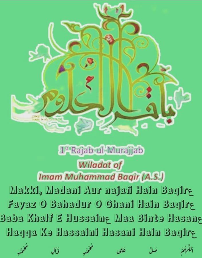 *यौम ए विलादत हज़रत इमाम मुहम्मद बाक़िर अलैहिस्सलाम मुबारक*