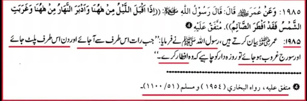 أُحِلَّ لَكُمْ لَيْلَةَ الصِّيَامِ الرَّفَثُ إِلَىٰ نِسَائِكُمْ ۚ هُنَّ لِبَاسٌ لَّكُمْ وَأَنتُمْ لِبَاسٌ لَّهُنَّ ۗ عَلِمَ اللَّهُ أَنَّكُمْ كُنتُمْ تَخْتَانُونَ أَنفُسَكُمْ فَتَابَ عَلَيْكُمْ وَعَفَا عَنكُمْ ۖ فَالْآنَ بَاشِرُوهُنَّ وَابْتَغُوا مَا كَتَبَ اللَّهُ لَكُمْ ۚ وَكُلُوا وَاشْرَبُوا حَتَّىٰ يَتَبَيَّنَ لَكُمُ الْخَيْطُ الْأَبْيَضُ مِنَ الْخَيْطِ الْأَسْوَدِ مِنَ الْفَجْرِ ۖ *_ثُمَّ أَتِمُّوا الصِّيَامَ إِلَى اللَّيْلِ_* ۚ وَلَا تُبَاشِرُوهُنَّ وَأَنتُمْ عَاكِفُونَ فِي الْمَسَاجِدِ ۗ تِلْكَ حُدُودُ اللَّهِ فَلَا تَقْرَبُوهَا ۗ كَذَٰلِكَ يُبَيِّنُ اللَّهُ آيَاتِهِ لِلنَّاسِ لَعَلَّهُمْ يَتَّقُونَ