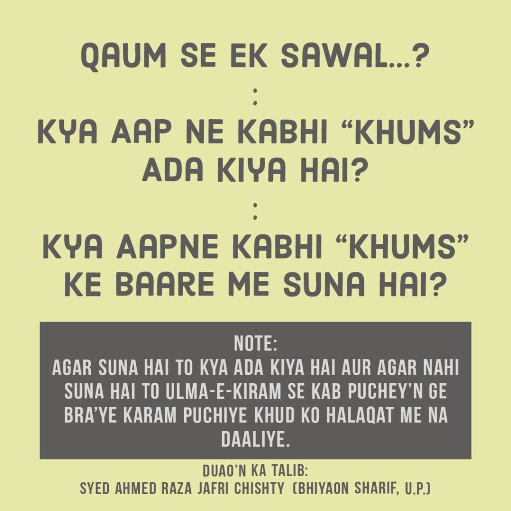 There are various items to which Khums applies. For example treasure trove and spoils of war, etc. But the most popular item in our daily life is the Khums on the surplus of income or on possessions that exceeds our needs.