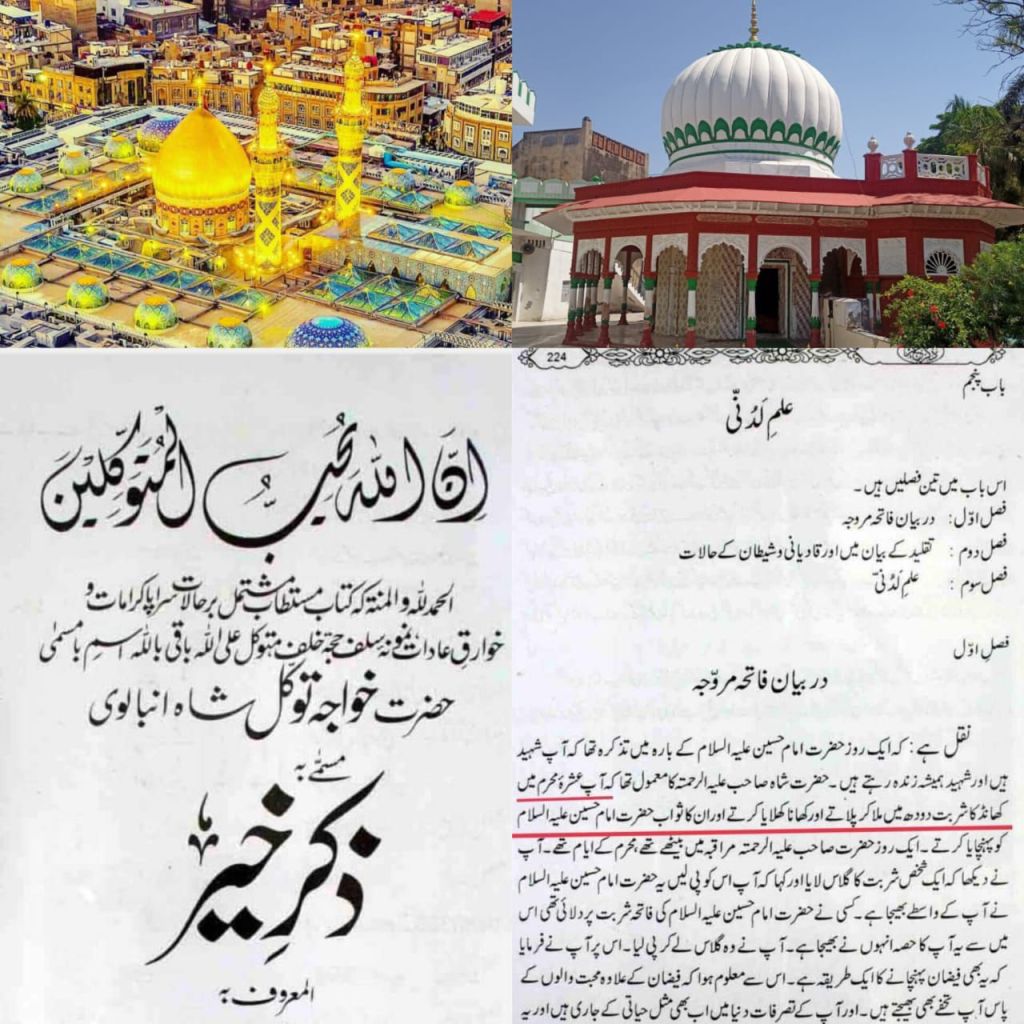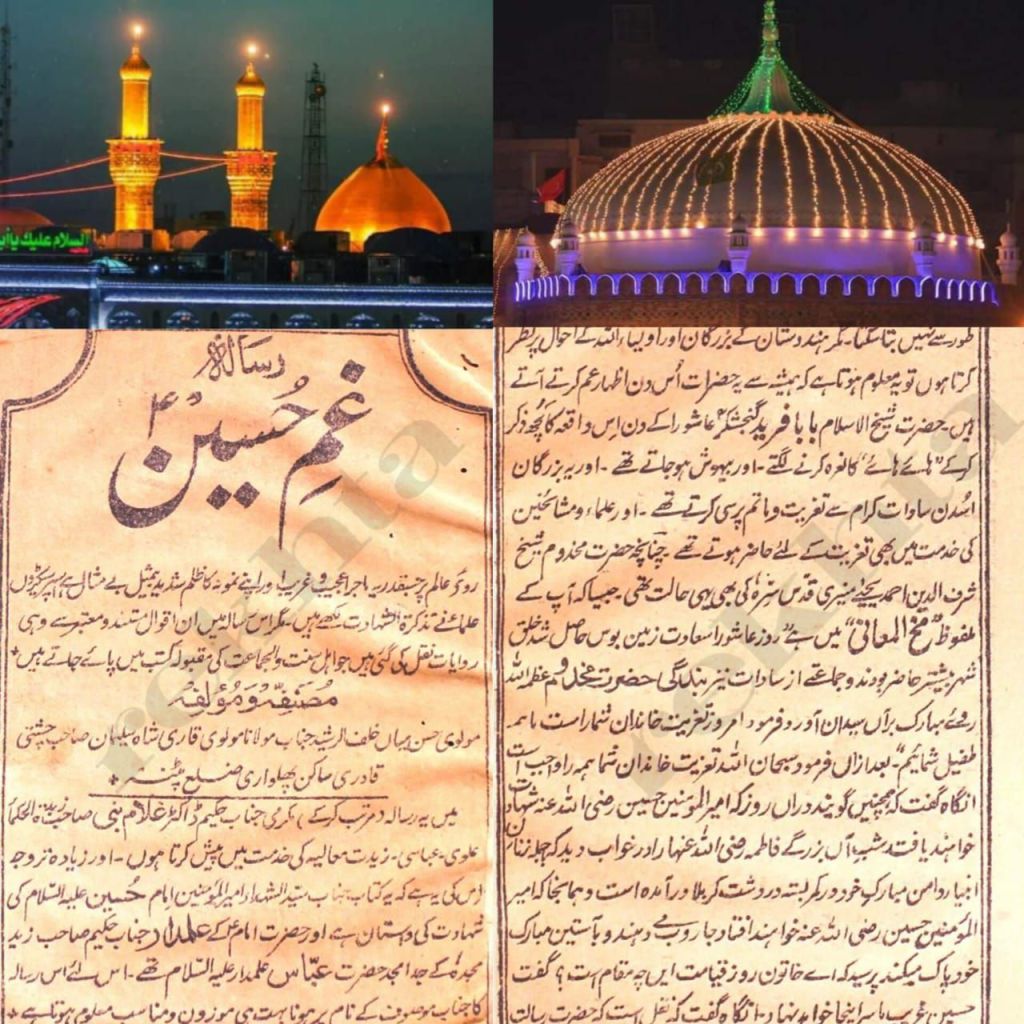 Hazrat Shah Sulaiman Phulwari Chishti Qadri Rehmatullah Alaih Jo Hazrat Baba Fareeduddin Masood Ganj Shakar Rehmatullah Alaih Ki Nasal Se Hain Aur Mureed o Shagird Ghous e Zama’n Hazrat Fazle Rehma’n Ganj Muradabadi Rehmatullah Alaih Ke Hain Aur Khalifa Hazrat Haji Imdadullah Muhajir Makki Rehmatullah Alaih Ke Hain Wo Apni Kitaab Gham e Hussain Me Likhte Hain :- Hazrat Baba Fareeduddin Masood Ganj Shakar Se Manqool Hain Ke Baghdad Sharif Me Ek Buzurgh The Jinke Samne Hazrat Imaam Hussain Ki Shahadat Ka Zikr Hua Wo Is Qadar Roye Ke Rote Rote Zameen Par Sar De Mara Aur Unka Sar Phat Gaya Jiski Wajah Se Unka Wisal Ho Gaya. Usi Raat Logo Ne Unko Khuwab Me Dekha Aur Haal Poucha To Farmaya :- Mene Ahle Baith Ki Muhabbat Me Apni Jaan Dedi Thi Isliye Khuda Ne Mujhko Baksh Diya Aur Me Hazrat Imaam Hussain Ke Saath Rehta Hu. Aur *Khud Baba Fareeduddin Masood Ganj Shakar Bhi Aashura Ke Din Karbala Ki Yaad Me “Haay Haay” Ka Nara Lagate Aur Behosh Ho Jate The.*