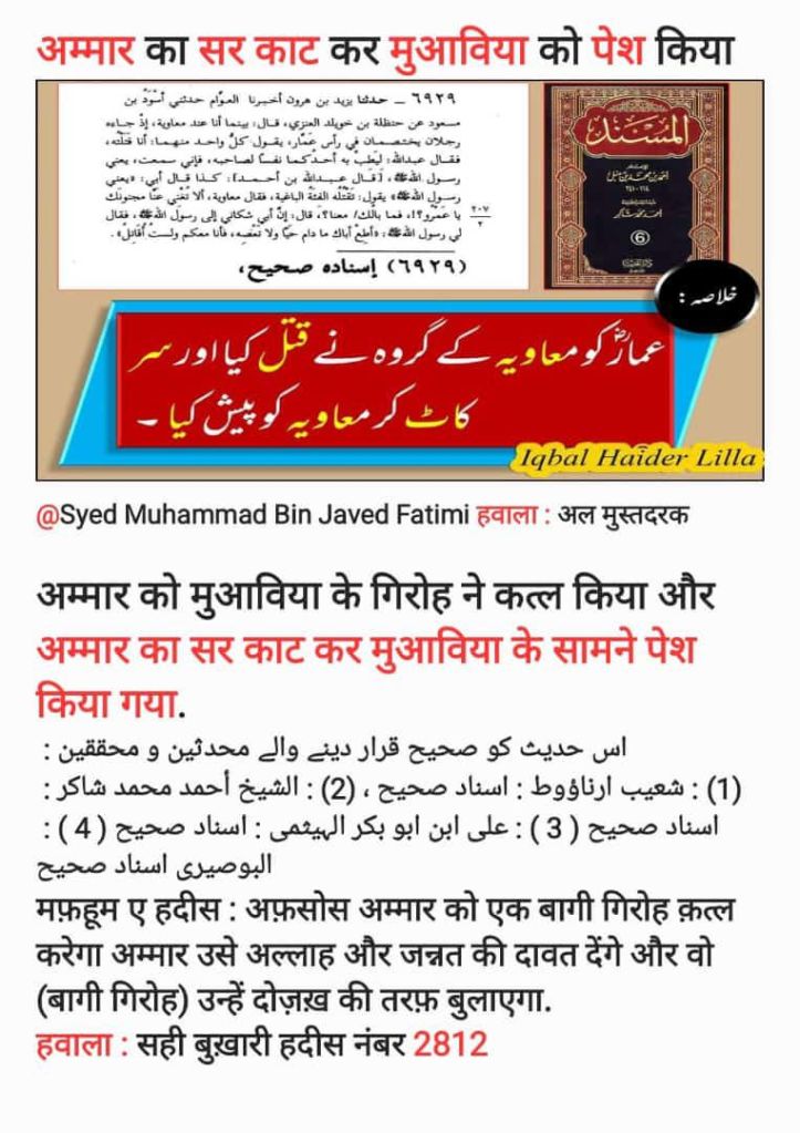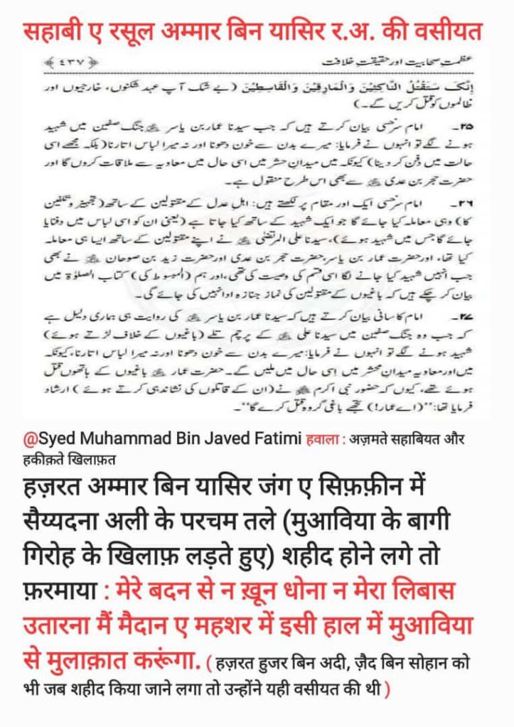 Note:= जंगे शीफिन में आपको मुआविय बिन अबू सूफियान के लश्करने बेदर्दी से सहिद किया और आपका
