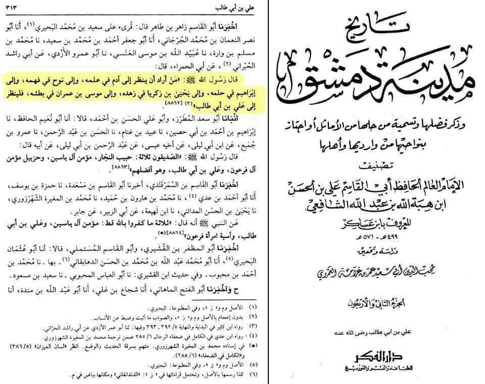2- रसूल अल्लाह ﷺ ने फ़रमाया:- जिसको नबियों (ع) की ख़ुसूसियातें देखनी हों तो वोह अली عَلَیهِالسَّلام इब्ने अबीतालिब عَلَیهِالسَّلام को देखे। (मदीना तुल दमिश्क, सफ़ाह 213)
