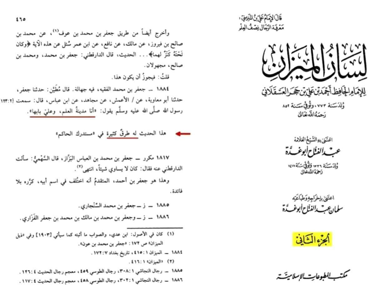 3- रसूल अल्लाह ﷺ ने फ़रमाया:- मैं (ﷺ) इल्म का शहर हूं और अली (عَلَیهِالسَّلام) उसका दरवाज़ा। (लिसान उल मीज़ान, सफ़ाह 465)