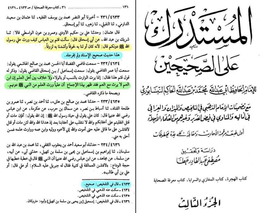 1- रसूल अल्लाह ﷺ ने फ़रमाया:- मौला अली عَلَیهِالسَّلام वारिस-ऐ-इल्म-ऐ-रसूल अल्लाह ﷺ हैं। (अल मुसतदरक अल सही’हैन, सफ़ाह 136