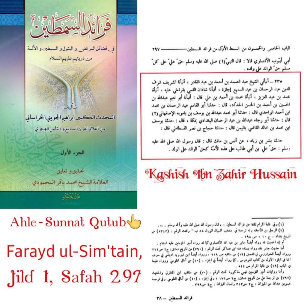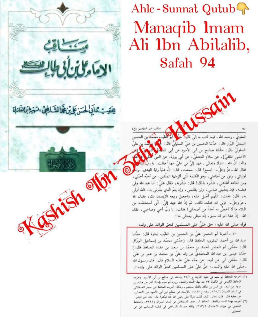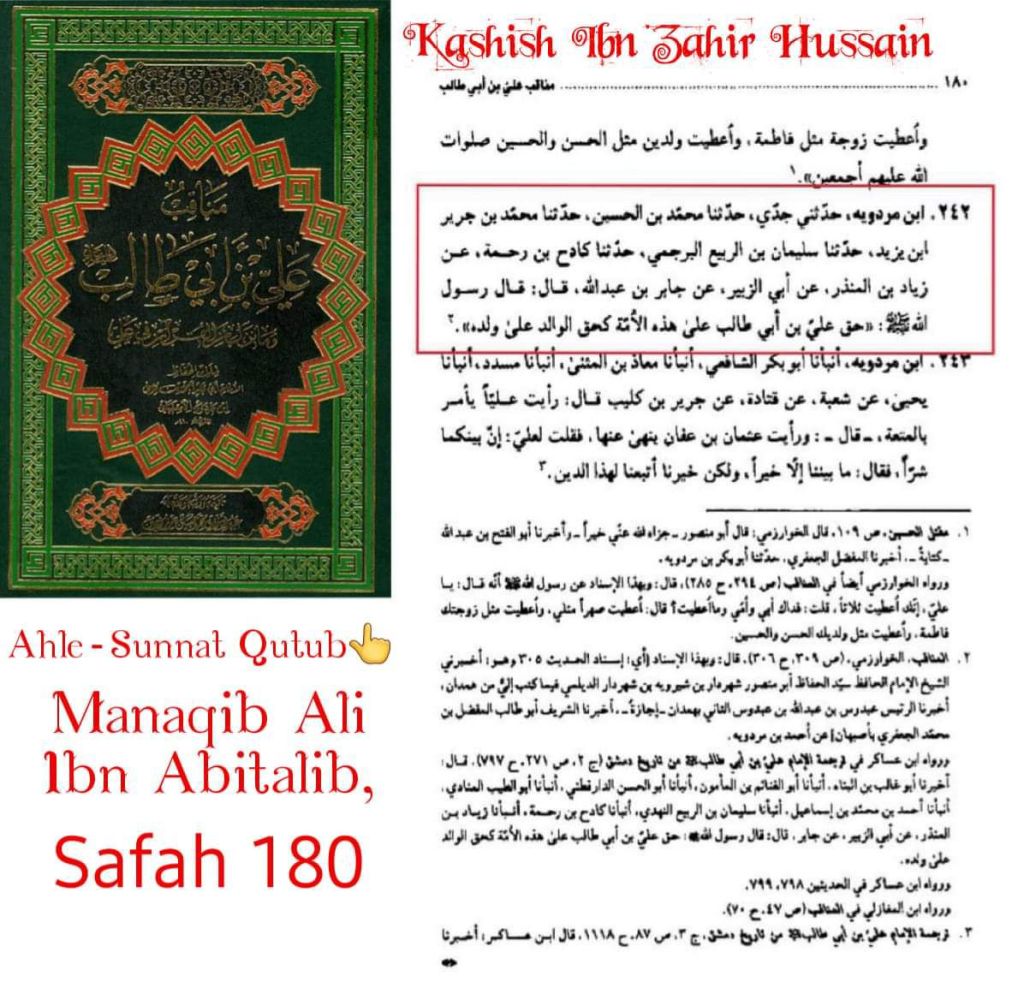 हज़रत जाबिर बिन अब्दुल्लाह رَضِىَ الـلّٰـهُ عَـنْهُ रिवायत करते हैं कि रसूल अल्लाह ﷺ ने फ़रमाया:- “हज़रत अली इब्ने अबीतालिब عَلَیهِالسَّلام का इस उम्मत पर उसी तरह हक़ है जिस तरह वालिद/बाप का बेटे पर हक़ होता है।”