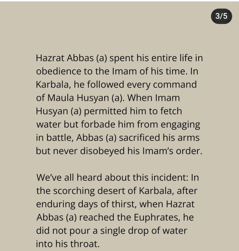 Hazrat Abbas The perfect example of loyalty. February 5, 2025 aal-e-qutub Share this: Click to share on X (Opens in new window) X Click to share on Facebook (Opens in new window) Facebook Click to print (Opens in new window) Print Click to share on Pinterest (Opens in new window) Pinterest Click to share on WhatsApp (Opens in new window) WhatsApp Like Loading... Related Published by aal-e-qutub View all posts by aal-e-qutub