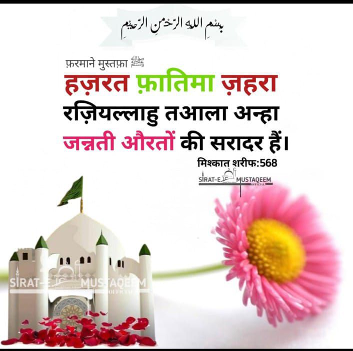 💫एक रिवायत में है हुज़ूर सल्लल्लाहु अलैहि वसल्लम ने हज़रत, फ़ातिमा ज़हरा रज़ियल्लाहु तआला अन्हा से फरमाया ऐ बेटी! तुम इस बात पर राजी नहीं हो कि तुम जहान की औरतों की सरदार हो? हज़रत फातिमा ने अर्ज़ किया अब्बा जान! फिर हज़रत मरयम का क्या मकाम है? *हुजूर सल्लल्लाहु तआला अलैहि वसल्लम ने फ़रमाया वह अपने ज़माने की सरदार हैं।* *(📚बुखारी शरीफः1/532)* *(📚अश्शफुल मोअब्बदः54)*