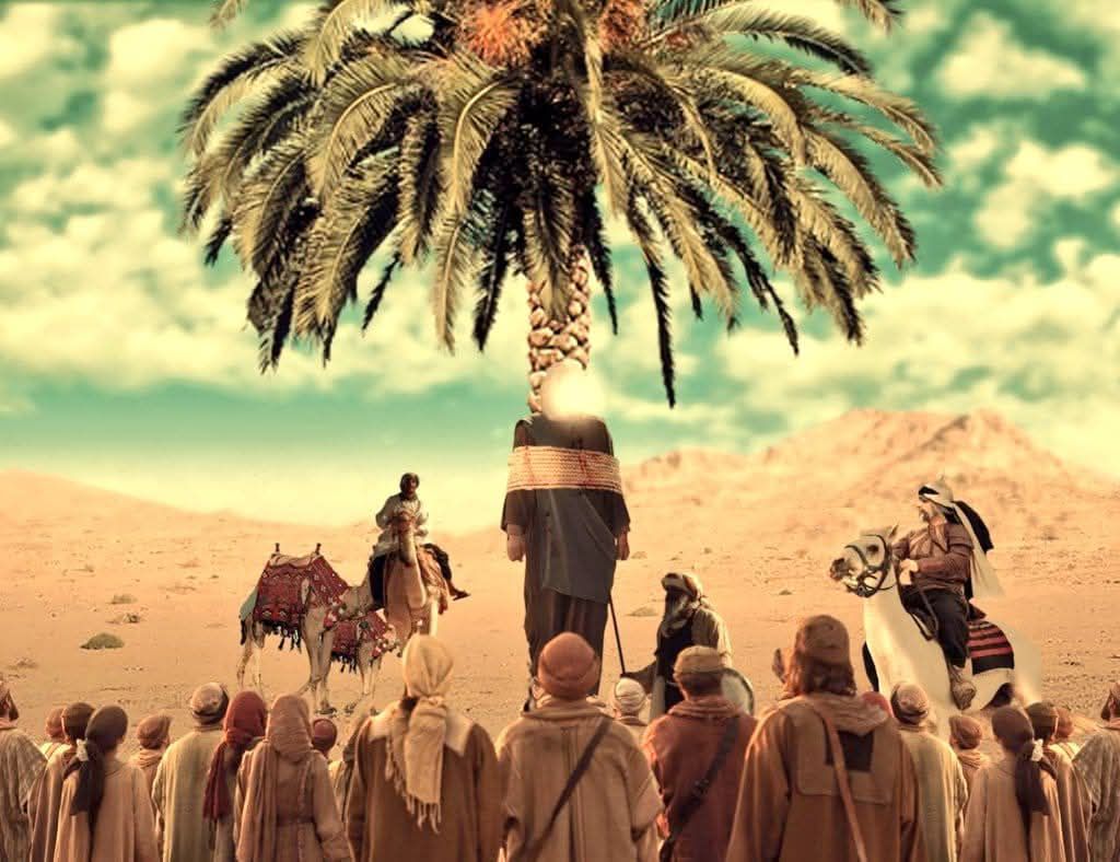Ubaidullah ibn Ziyad ordered Meesam (r) to be jailed & then ordered him to be crucified. Meesam (r) was brought to the same tree to be hanged as pointed out by Imam Ali (a). He began singing the praises of his master, & about a thousand people gathered to see Meesam being hanged. Even after being hanged, his tongue went on singing the praises of Imam Ali (a). Ubaidullah was informed about this & the tyrant ordered to cut the tongue of Meesam.