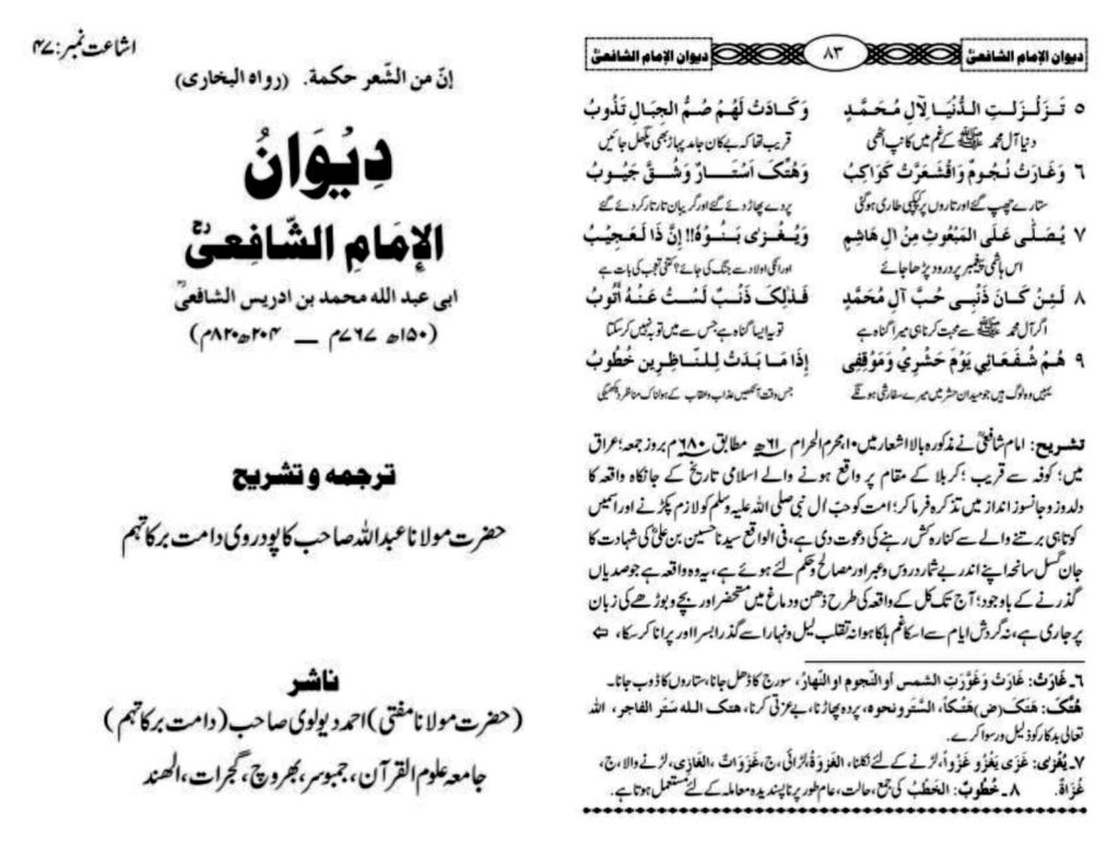 *Dusri Sadi Ke Mujjaddid 1243 Saal Purane Imaam Maslak e Shafai Ke Bani Nasir ul Sunnat Hazrat Abu Abdullah Muhammad Bin Idrees Al Maroof Imaam Shafai Ke Gham e Imaam e Hussain Me Likhe Hue Ashaar Ka Urdu Tarjuma*